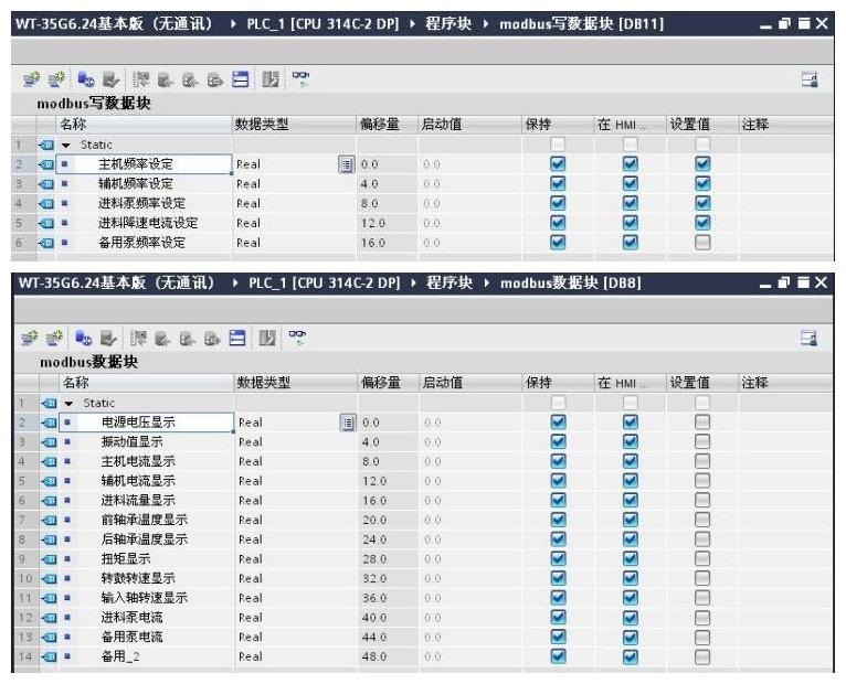 氣化plc系統(tǒng)與污泥脫水機PLC系統(tǒng)的數(shù)據(jù)交換中,模擬只讀數(shù)據(jù)塊為DB11,數(shù)據(jù)類型為實;模擬讀寫數(shù)據(jù)塊為DB8,數(shù)據(jù)類型為實;數(shù)據(jù)只讀數(shù)據(jù)調(diào)用地址段為M210.0~M212.4;數(shù)字讀寫數(shù)據(jù)調(diào)用AD。服裝段為M213.0~M213.7。有關(guān)更多信息,請參見圖4-2。