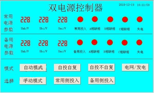 在手動模式下,電源不能自動切換,需要人工操作。主要有普通電源,備用電源和斷電再補償模式。